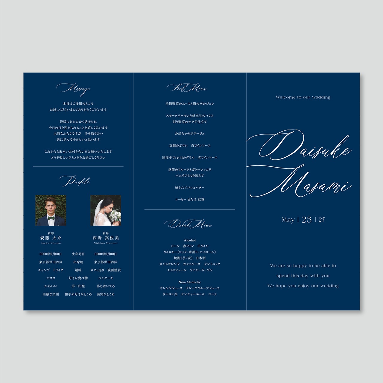 ご挨拶・プロフィール・メニュー表・席次表