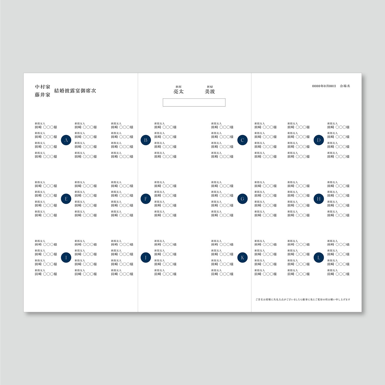 三つ折り席次表 Grace T
