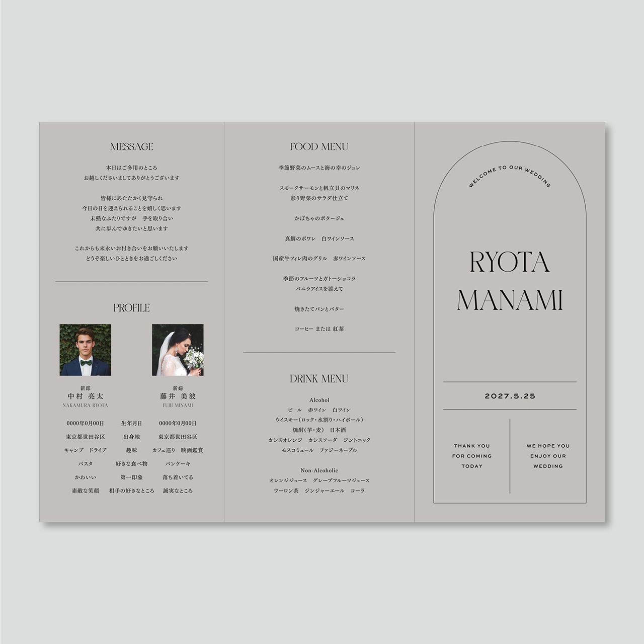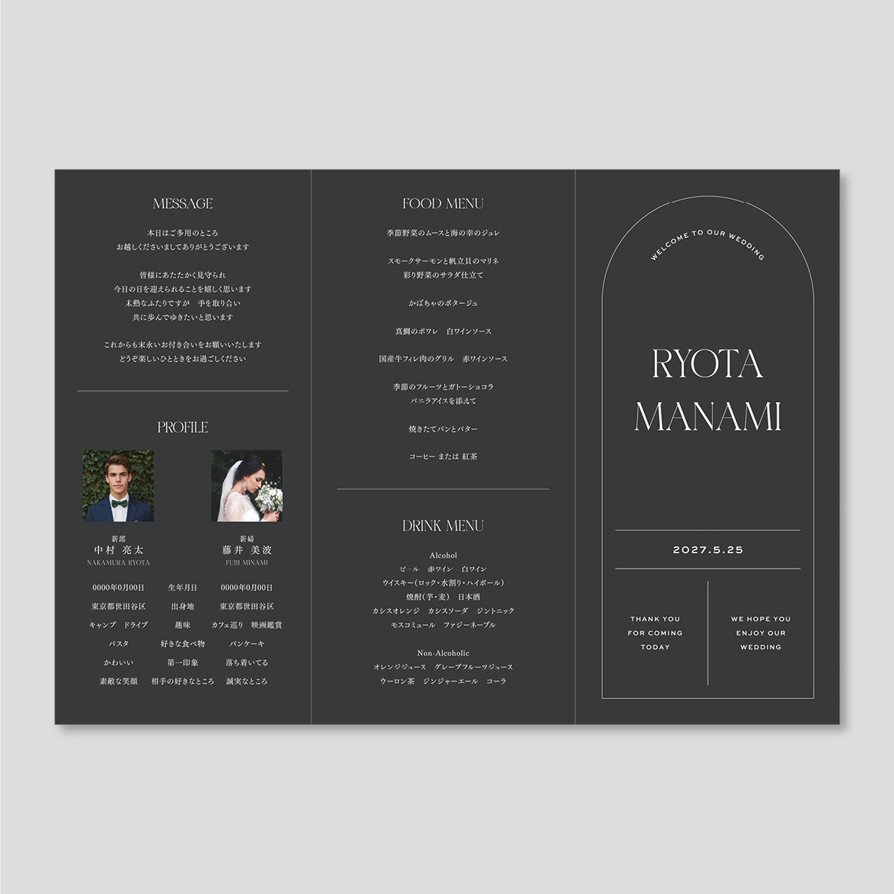 ご挨拶・プロフィール・メニュー表・席次表