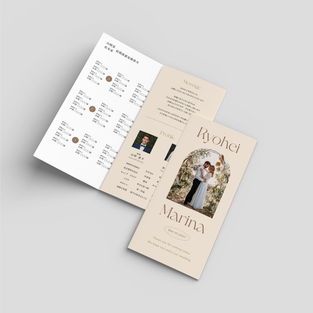 ご挨拶・プロフィール・メニュー表・席次表