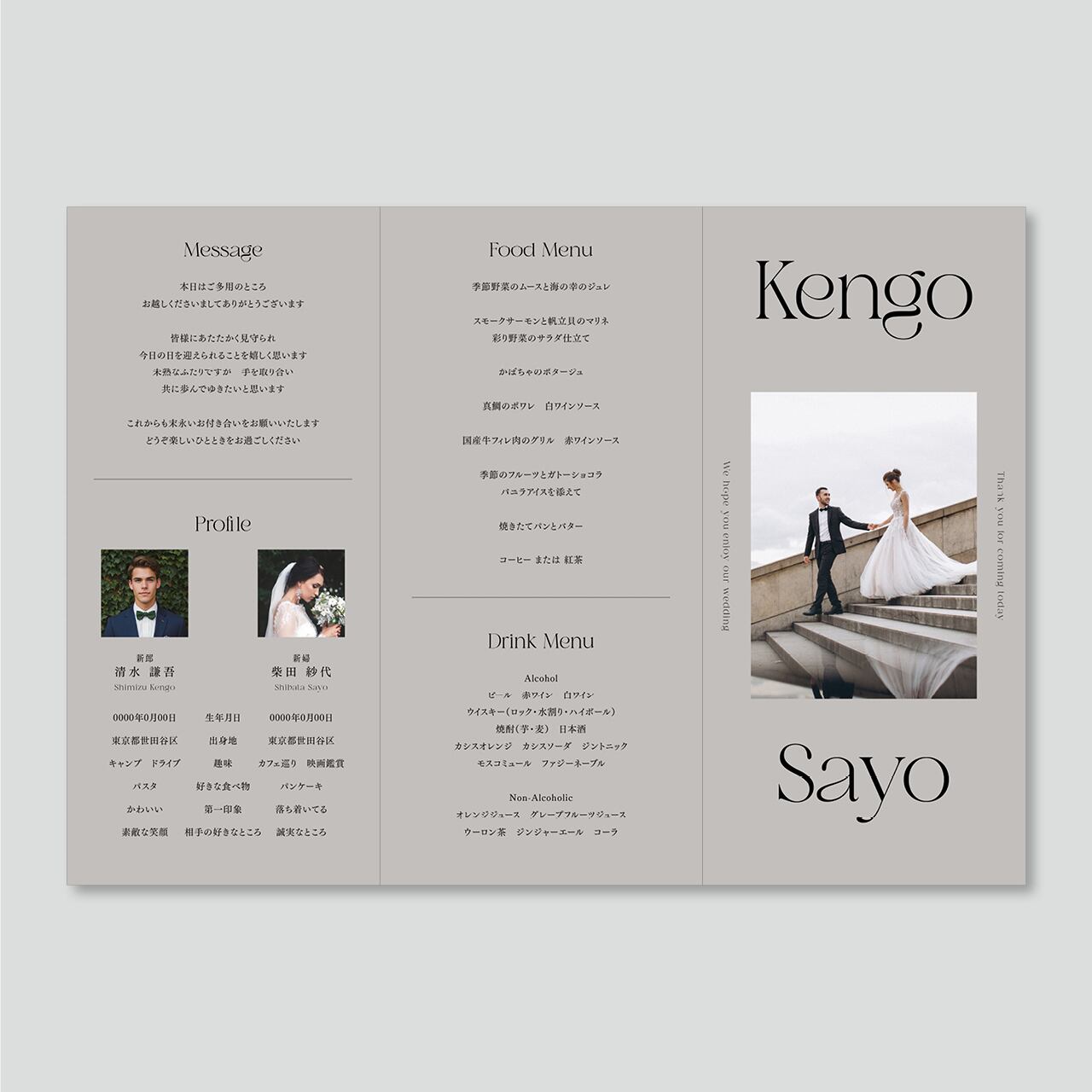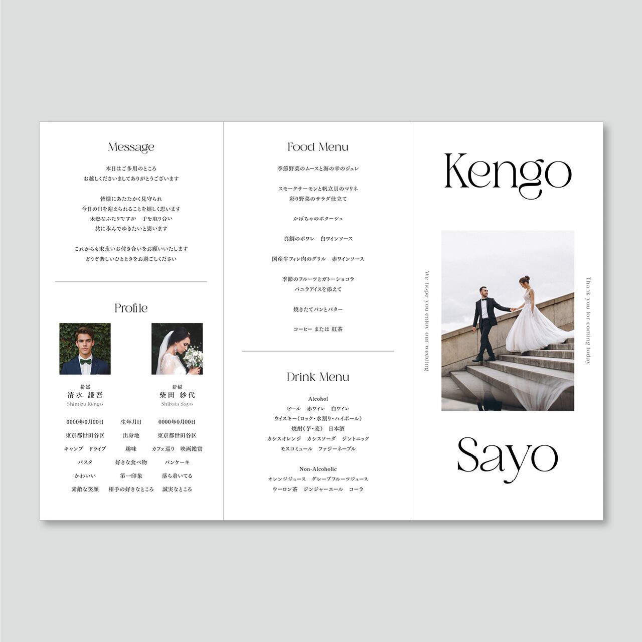 ご挨拶・プロフィール・メニュー表・席次表