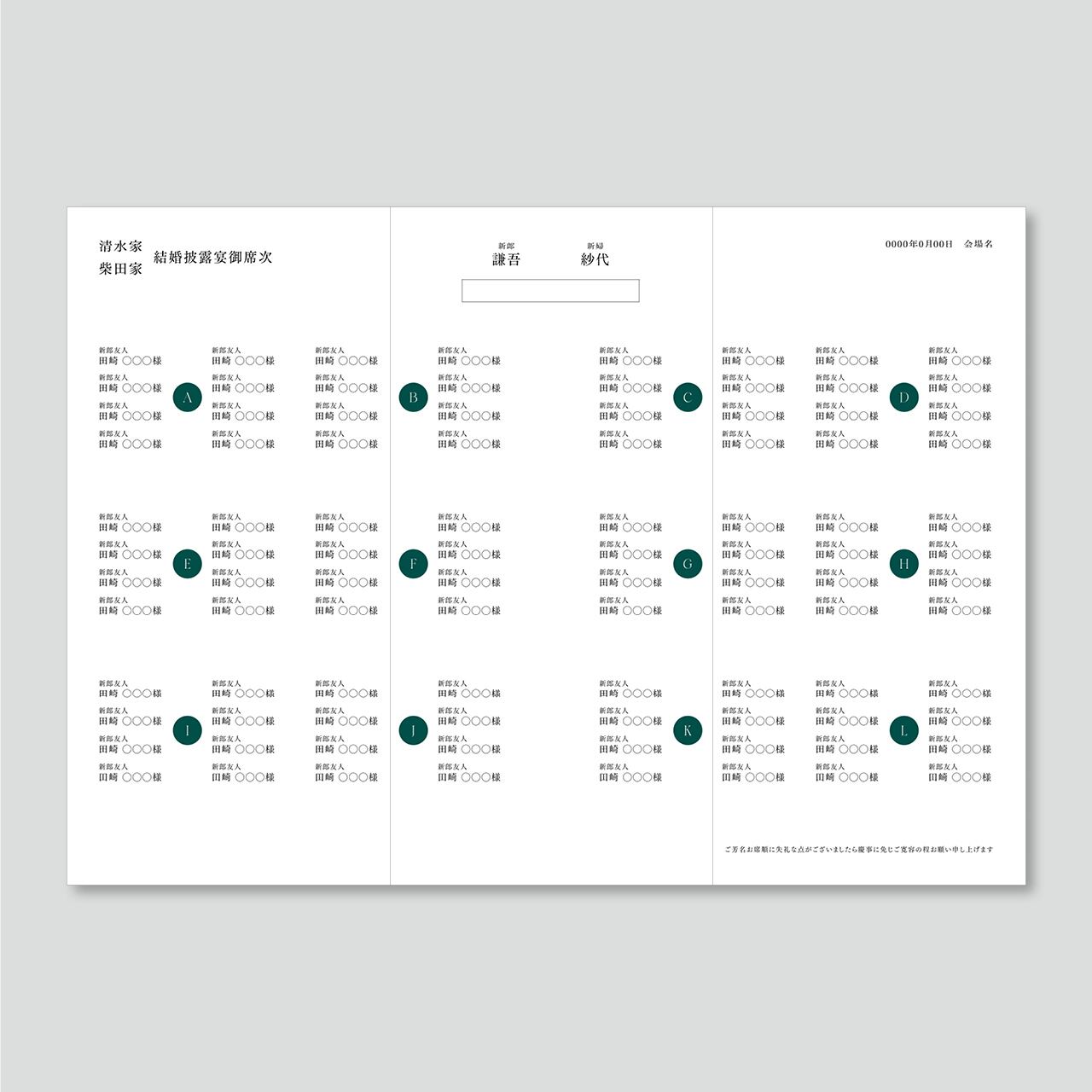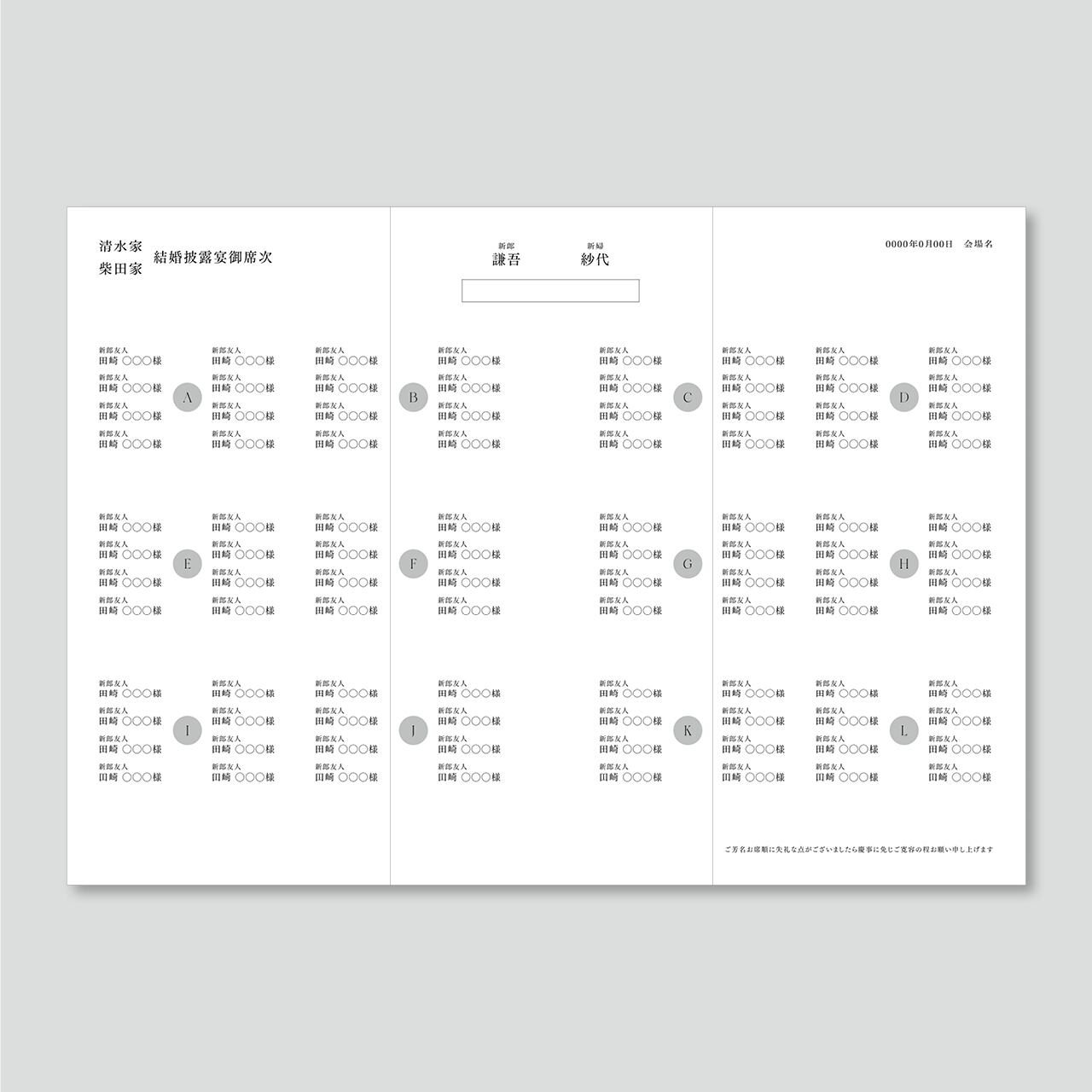 三つ折り席次表 Elegance P