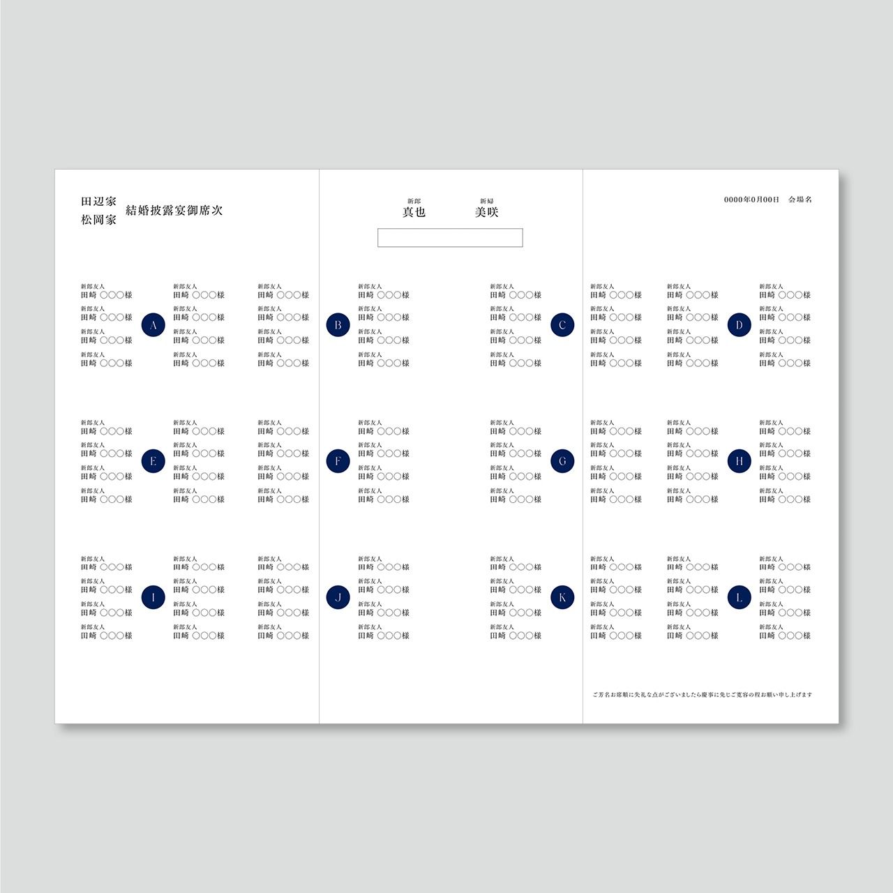 三つ折り席次表 Classic P