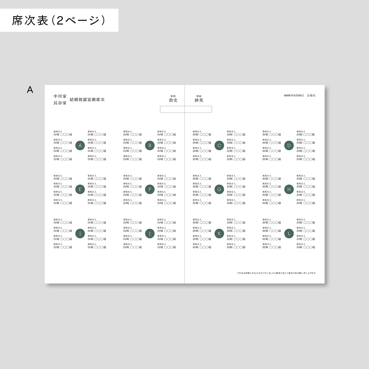 席次表のゲストの人数が110名以上、またはテーブルが縦4列・横5列以上に並ぶ場合はサイズアップをおすすめいたします。